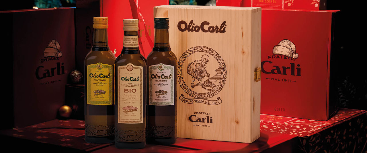 Die Olio Carli Geschenkbox vereint unsere drei ikonischen Native Olivenöle Extra in einer stilvollen Holzkiste. Ein sensorisches Abenteuer – von harmonisch und ausgewogen bis intensiv und ausdrucksstark.